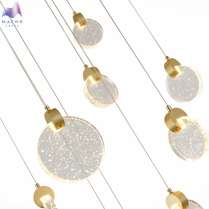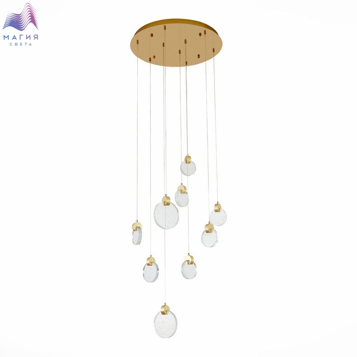 Светильники ST luce Montecelio привлекают своим футуристичным дизайном. Свет от диодов преломляется, проходя через диски из хрустального стекла с множеством пузырьков внутри. Разнообразие форм светильников позволяет подобрать оптимальный вариант для любой зоны помещения. Все подвесные светильники в коллекции регулируются по высоте, что позволяет создавать индивидуальные композиции.