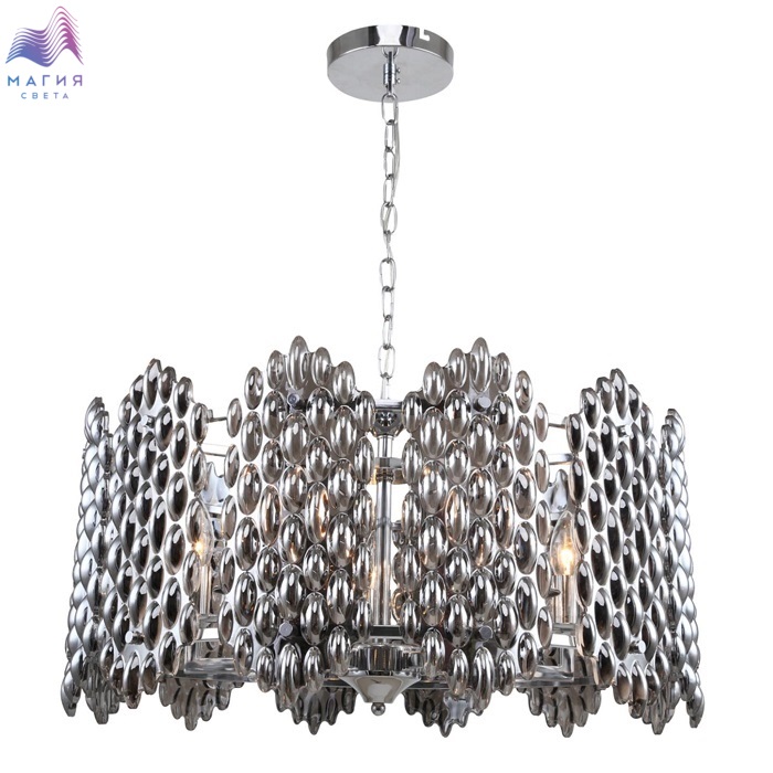 Люстра подвесная хрустальная 1007/09/05P Stilfort серии Glazgo выполнена в стиле модерн. Арматура, изготовленная из окрашенного металла в цвете хром, украшена хрустальными декоративными панелями.