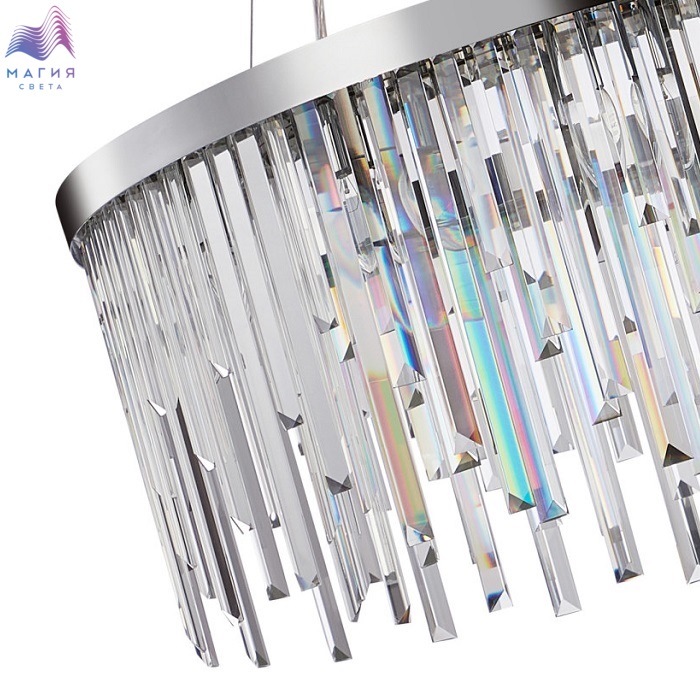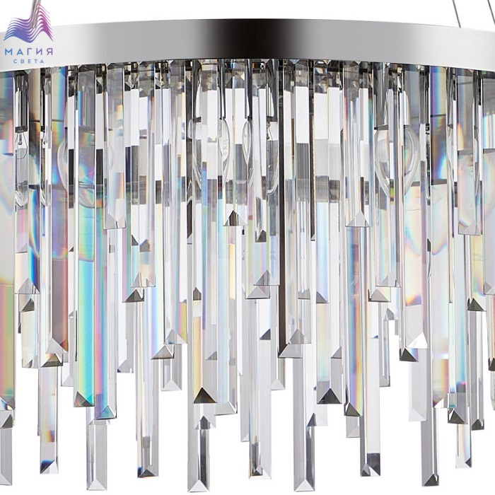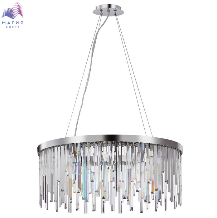 Люстра подвесная хрустальная 2113/09/12P Stilfort серии Venecia выполнена в стиле модерн. Арматура изготовлена из металла в цвете "хром". Она украшена хрустальными навесными декоративными элементами.