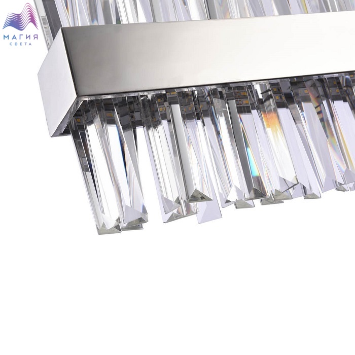 Серия Vele Luce Calabria исполнена в современном стиле. Абажур выполнен из прозрачных граненых элементов. Металлический обод окрашен в хромированный цвет. Множество граней дарят невероятное сияние лампам!