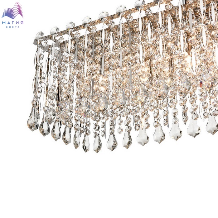 Коллекция Vele Luce Marisa точно станет центральным элементом интерьера! Хрустальные капли полностью скрывают источники света. Четкий металлический каркас цвета "хром" имеет геометричную форму.
