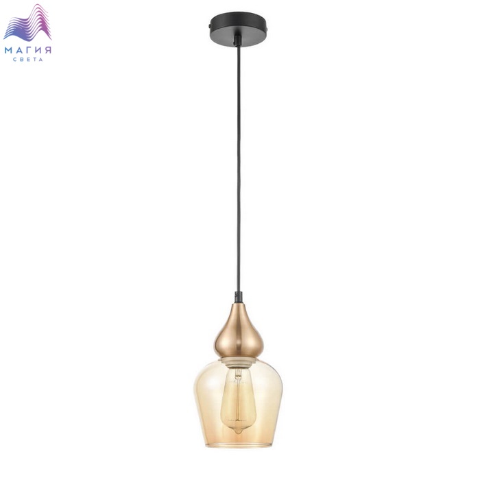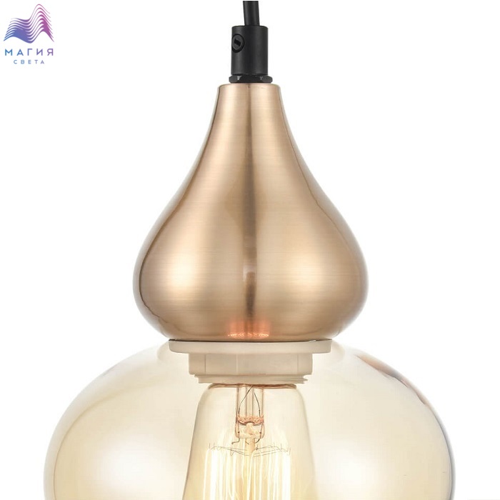 Серия Vele Luce Simone привлекает внимание сложной формой плафона. Плафоны изготовлены из янтарного или дымчатого стекла. А металлические части покрыты черной и латунной краской. Длину проводов можно отрегулировать при монтаже.