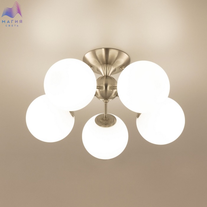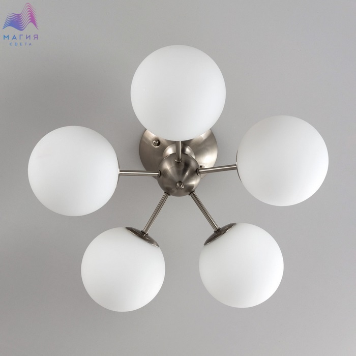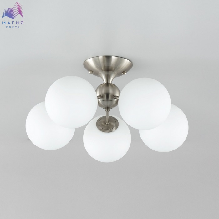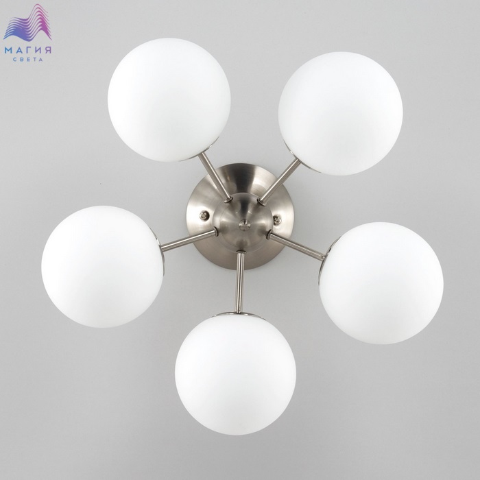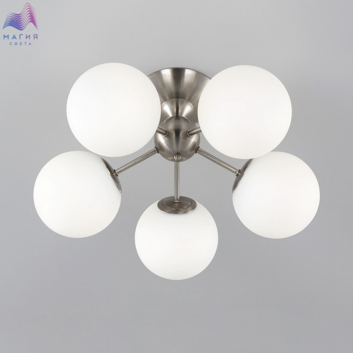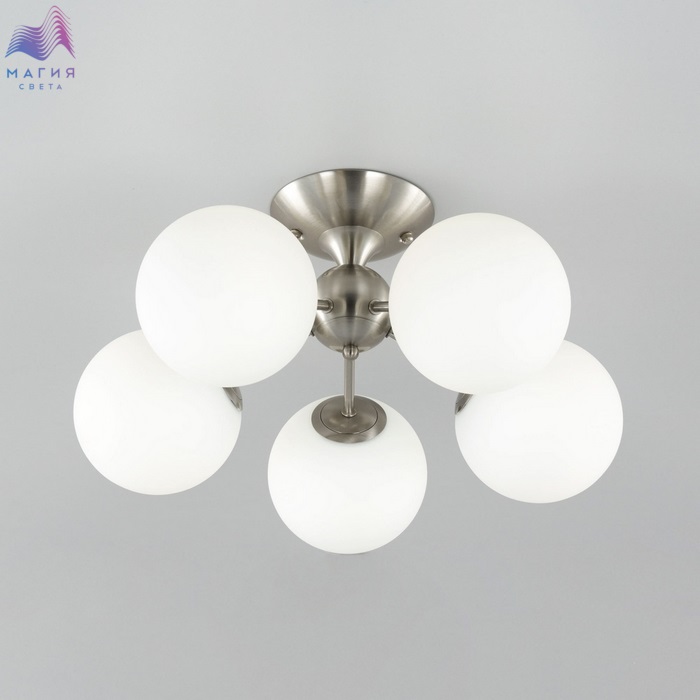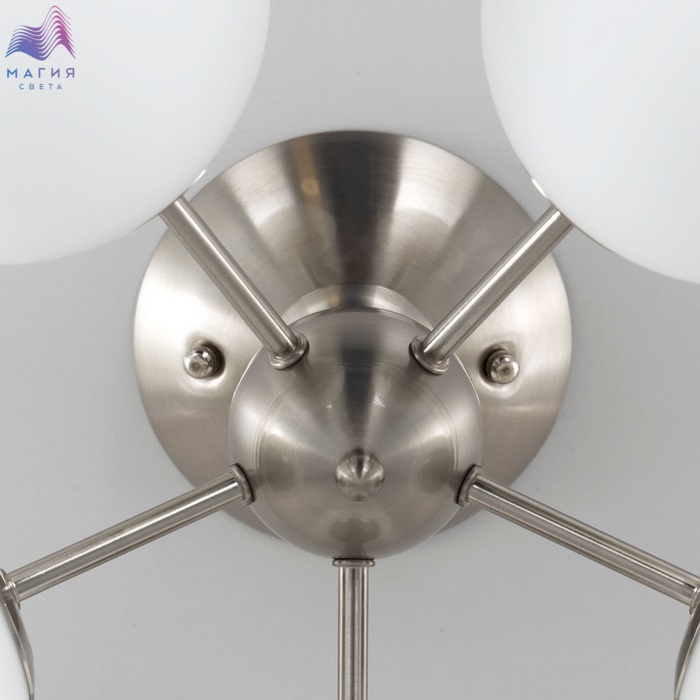 Потолочная люстра Citilux Томми CL102154. Материал: металл/стекло. Цвет: матовый хром/белый. Плафоны стеклянные, в форме шара. Площадь освещения около 12м².