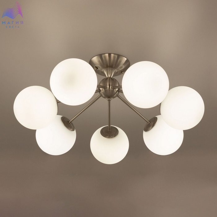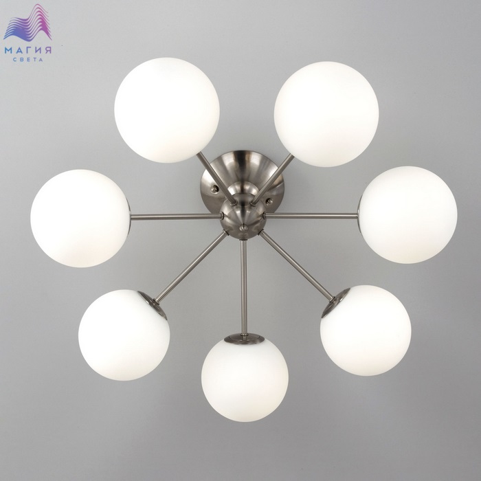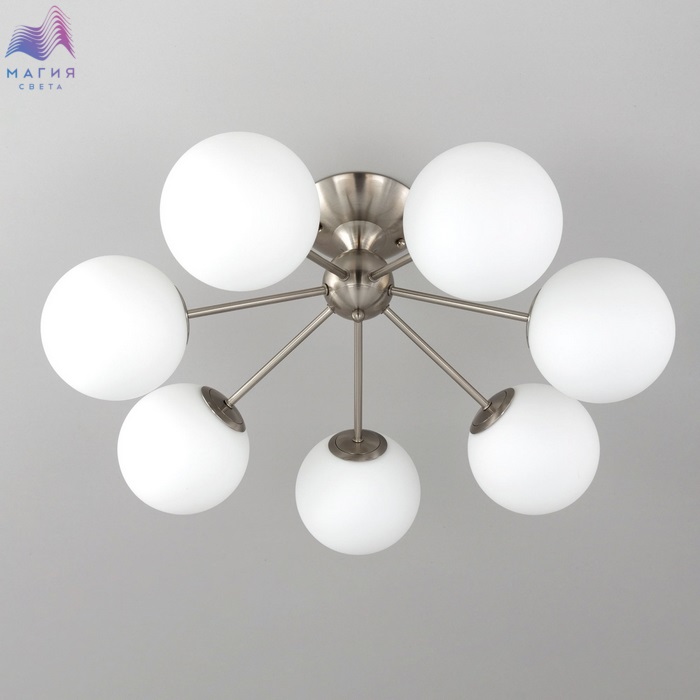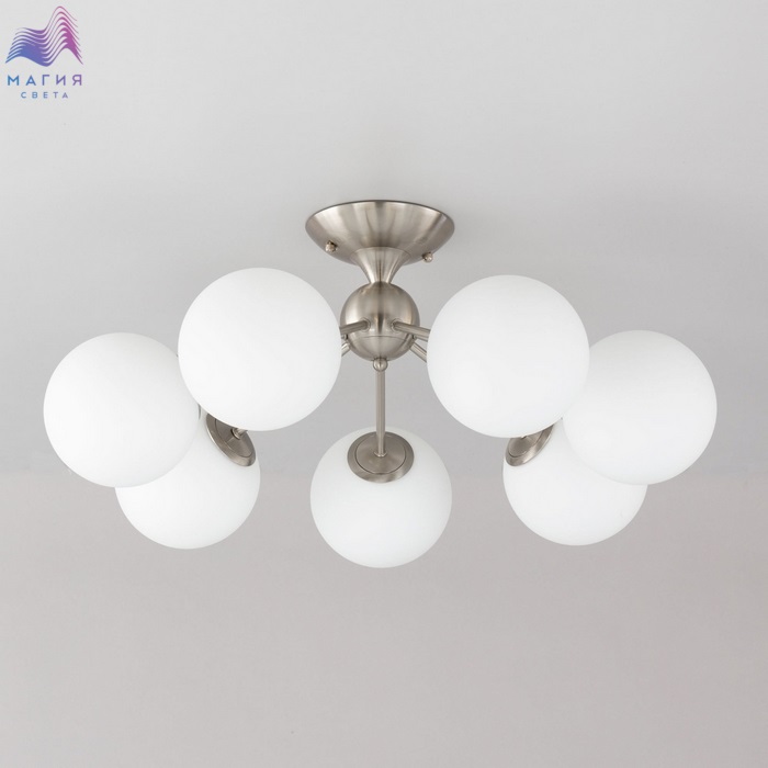 Потолочная люстра Citilux Томми CL102174. Материал: металл/стекло. Цвет: матовый хром/белый. Плафоны стеклянные, в форме шара. Площадь освещения около 17м².