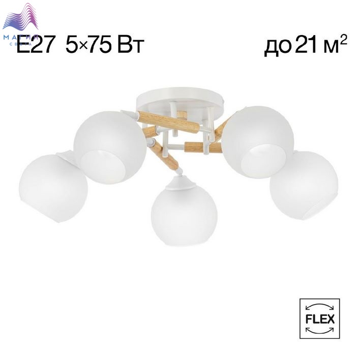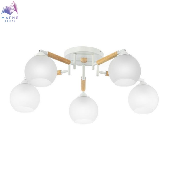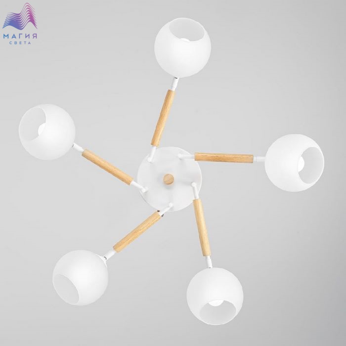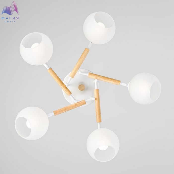Потолочная люстра Citilux Tika CL133150. Материал: металл/дерево/стекло. Цвет: белый/натуральное дерево/белый. Поворотные шарниры позволяют направить плафоны в любую сторону.