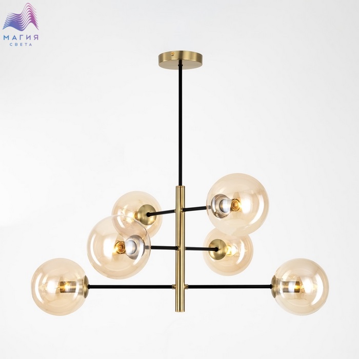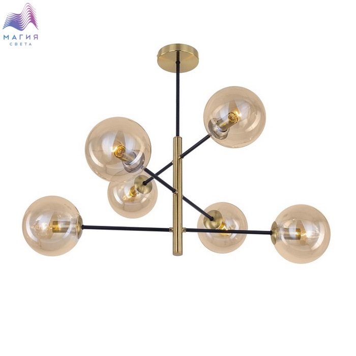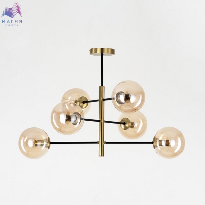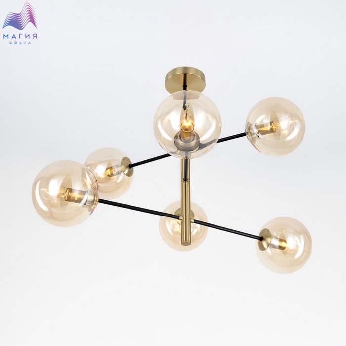 Потолочная люстра Citilux Лорен CL146263. Материал: металл/стекло. Цвет: бронза/черный/светло-янтарный.
