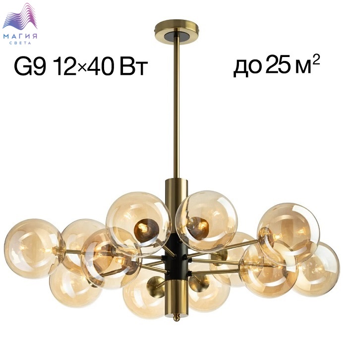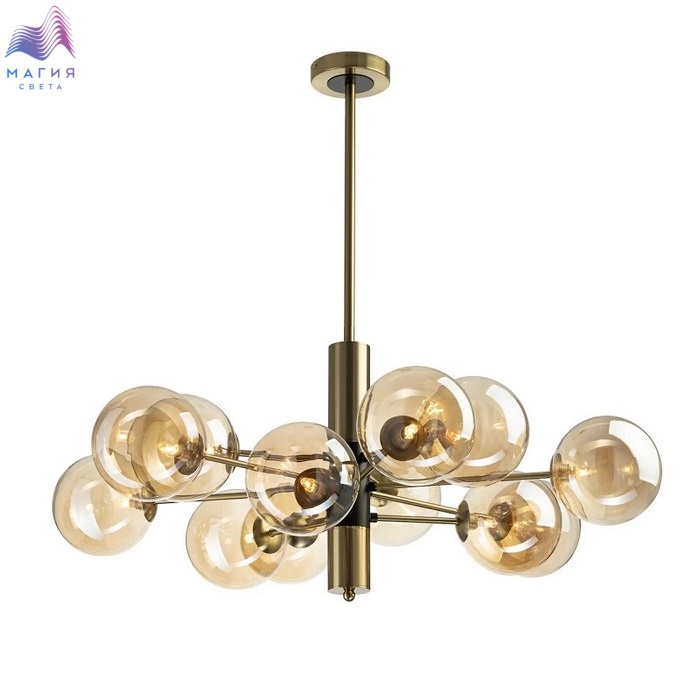 Потолочная люстра Citilux Нарда CL204190. Материал: металл/стекло. Цвет: бронза/черный/шампань. Плафоны в форме шара изготовлены из прозрачного стекла светло-янтарного оттенка.