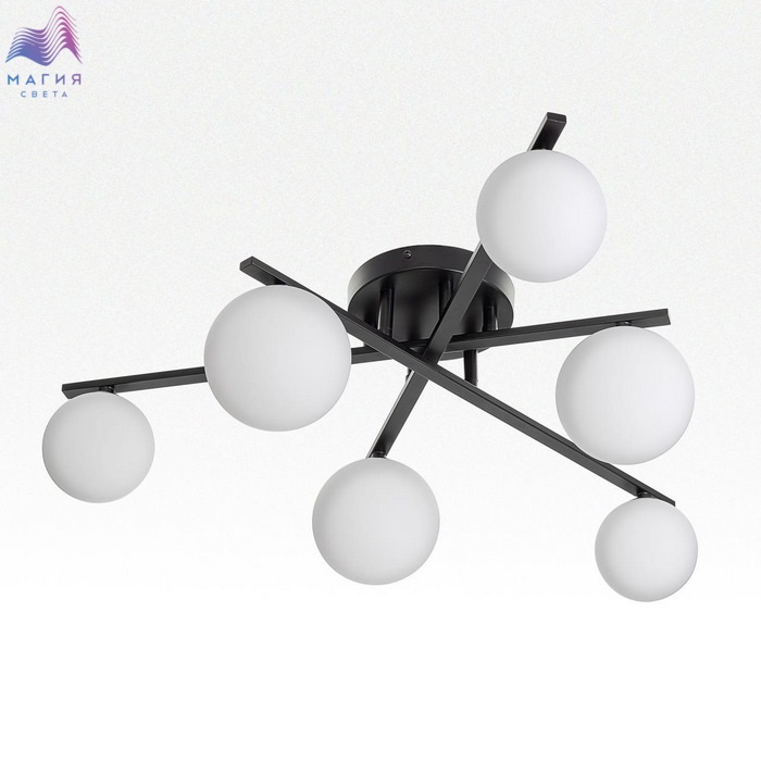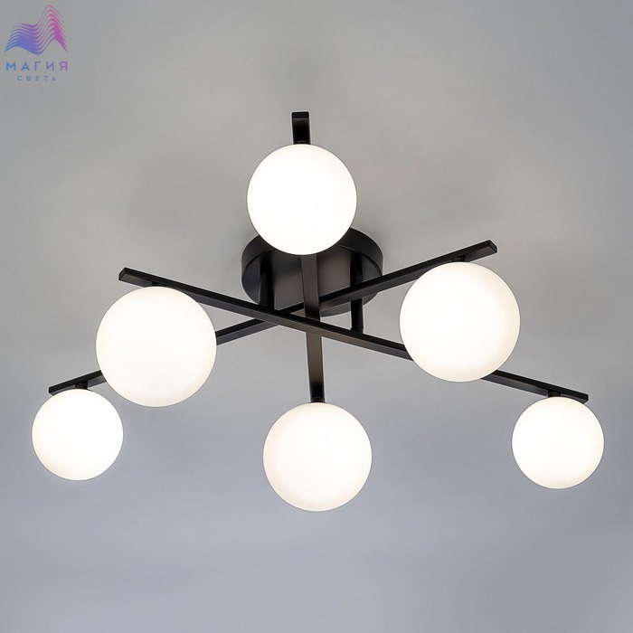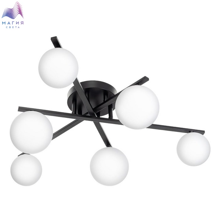 Потолочная люстра Citilux GLOB CL209261. Материал: металл/стекло. Цвет: черный/белый. Плафоны из матового стекла в форме шаров создают мягкое и равномерное освещение.