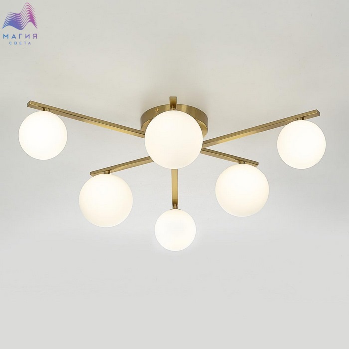 Потолочная люстра Citilux GLOB CL209263. Материал: металл/стекло. Цвет: бронза/белый. Плафоны из матового стекла в форме шаров создают мягкое и равномерное освещение.