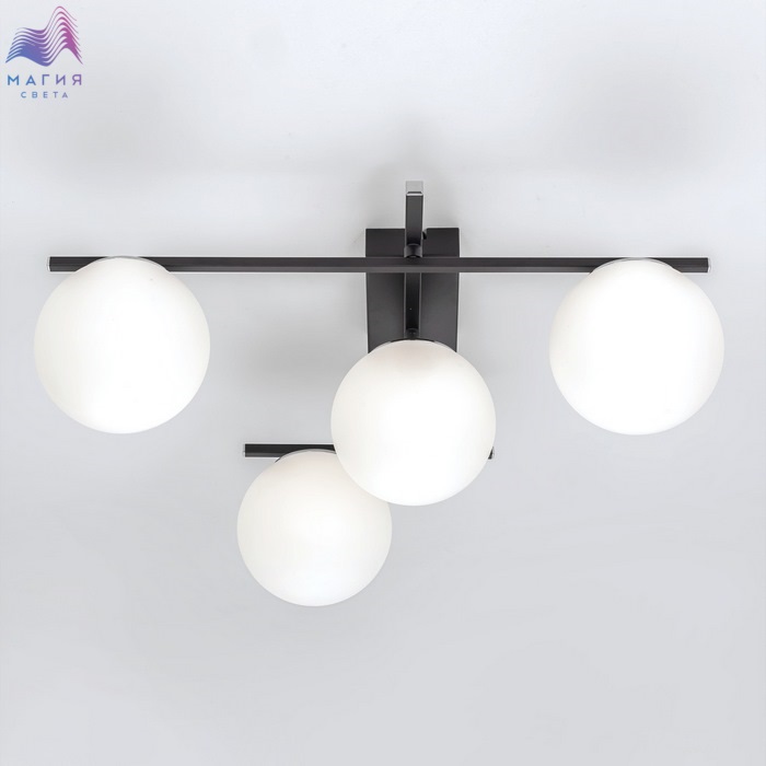 Потолочная светодиодная люстра Citilux CL223142 Dorsy. Материал: металл/полимер. Цвет: черный/белый. Четыре плафона в форме шаров из матового оптического полимера. Поворотные рожки позволят придать модели различные формы. Пульт ДУ в комплекте (регулировка яркости от 10 до 100%, цветовая температура от 3000 до 5500К).