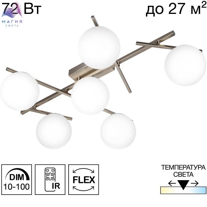 Потолочная светодиодная люстра Citilux CL223161 Dorsy. Материал: металл/полимер. Цвет: матовый хром/белый.Четыре плафона в форме шаров из матового оптического полимера. Поворотные рожки позволят придать модели различные формы. Пульт ДУ в комплекте (регулировка яркости от 10 до 100%, цветовая температура от 3000 до 5500К).