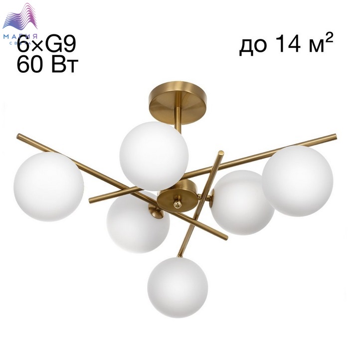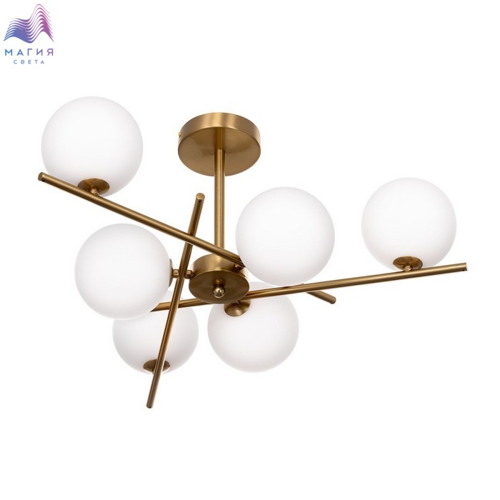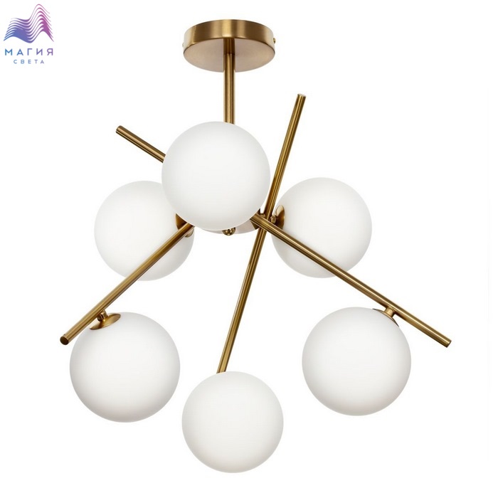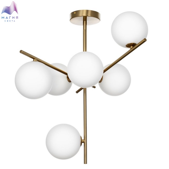 Потолочная люстра Citilux RONNY CL242163. Материал: металл/стекло. Цвет: бронза/белый. Плафоны в форме шара изготовлены из матового стекла. Площадь освещения от 7 до 14м².