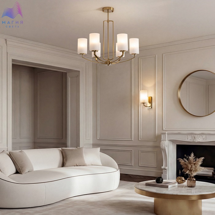Серия Freya Arricci исполнена в классическом стиле. Центральное основание смотрится легко и создает ощущение невесомости. Плафоны выполнены из стекла или белой ткани.