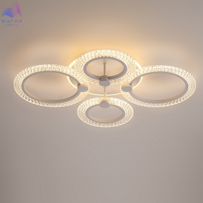 Светодиодная люстра Lumion Molly имеет популярную форму плафонов. Абажуры-кольца идеально смотрятся в небольших помещениях правильной формы с невысокими потолками. Управление клавишей на стене поможет ступенчато переключать цветовую температуру (3000-4000-6000К).