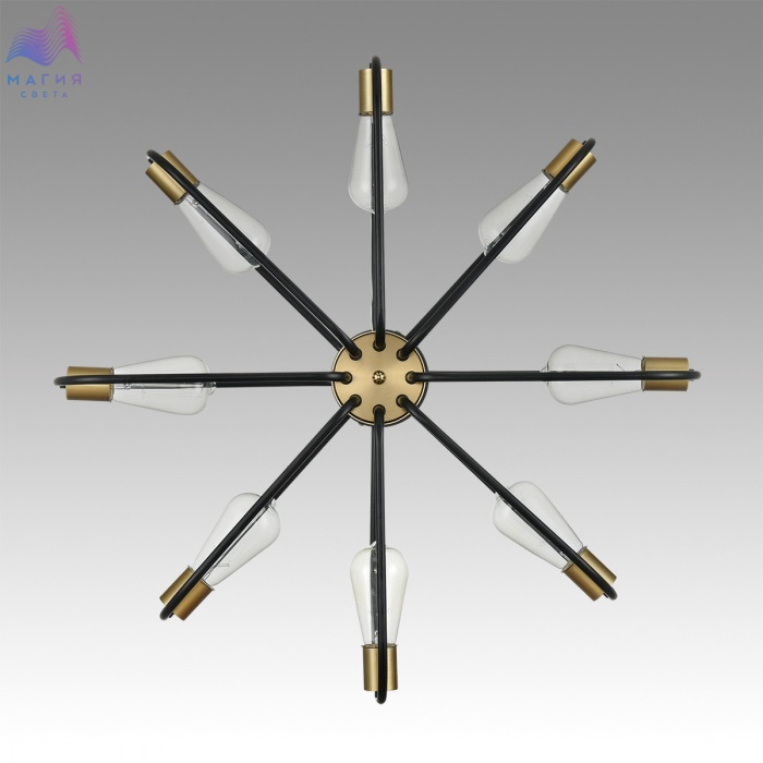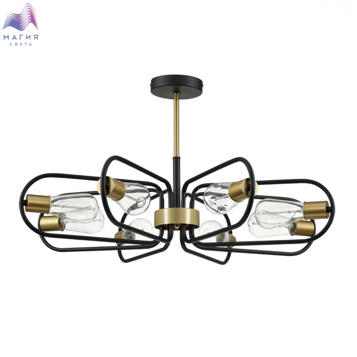 Потолочная люстра Lumion Almira исполнена в стиле лофт. Черные дуги основания в глубине изгиба обрамляют лампу. Медные элементы выступают скромным декором, акцентируя внимание в целом на люстре.
