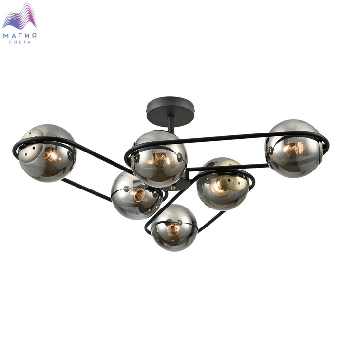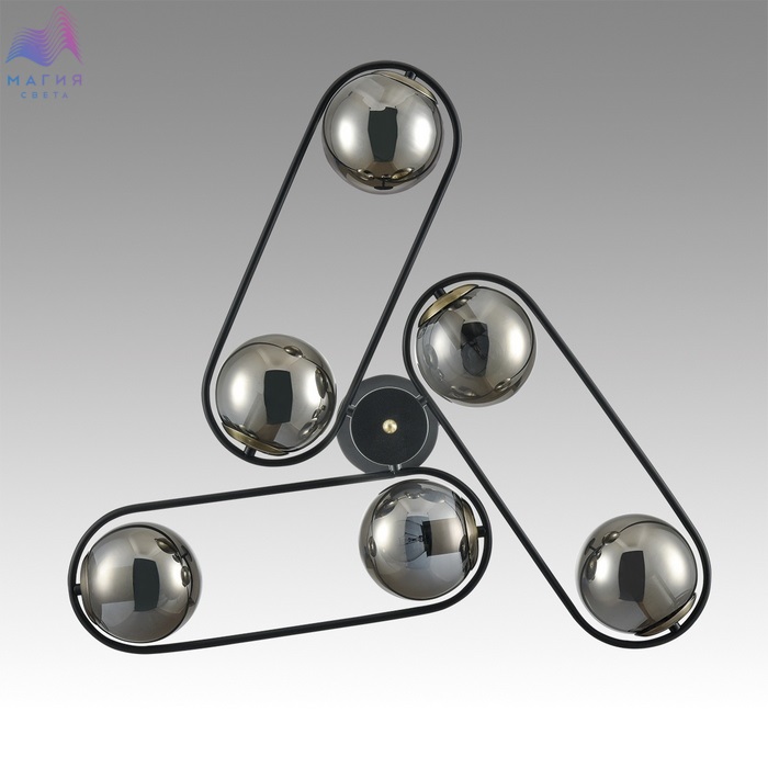 Потолочная люстра Lumion Camilie имеют причудливую форму. Модель исполнена в стиле модерн. Плафоны изготовлены из дымчатого стекла, имеют форму шара.