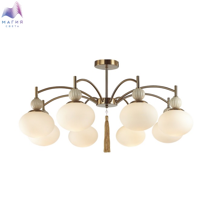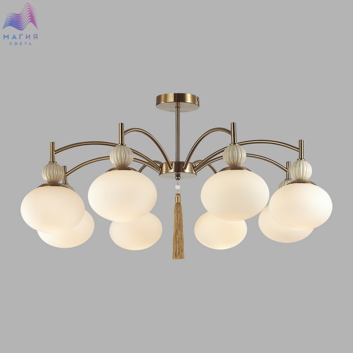 Серия светильников Lumion Gloriya привлекает внимание необычной формой плафонов в виде элипсоида и керамики в виде фактурных шарообразных элементов бежевого или серого цвета. Изящная арматура в латунном или черном цвете объединяет все элементы и венчается шелковой съемной кисью в центре всей композиции.