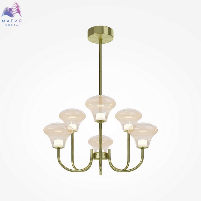 Колекция Maytoni Dynasty отличается изысканным дизайном. Арочная конструкция люстр и бра, плафоны, выполненные из тонированного стекла, встроенный источник света – все это воплощение классики в современной интерпретации. Металлическая арматура окрашена в сатинированный латунный цвет. Плафоны из глянцевого стекла обтекаемой формы с плавным градиентом от коньячного цвета к прозрачному создают многослойность визуального ряда.