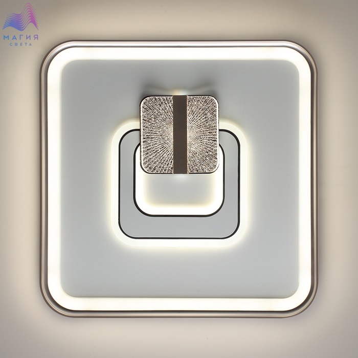 Светильники Сонекс Gemini имеют несколько контуров освещения, которые создают красивый декоративный эффект. В центре находится декоративный элемент в виде круга с акрилом ячеистой фактуры. Светильник оснащен пультом ДУ.
