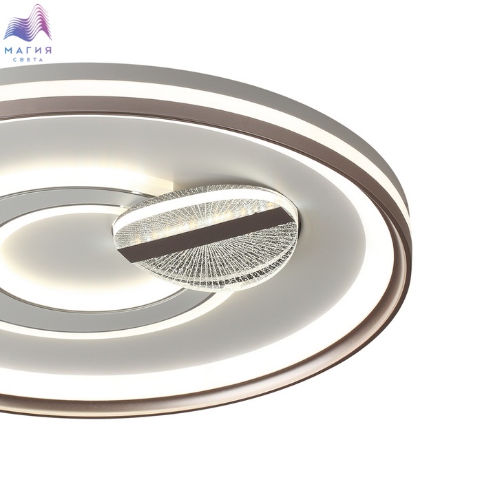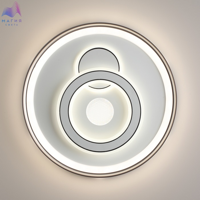 Светильники Сонекс Gemini имеют несколько контуров освещения, которые создают красивый декоративный эффект. В центре находится декоративный элемент в виде круга с акрилом ячеистой фактуры. Светильник оснащен пультом ДУ.