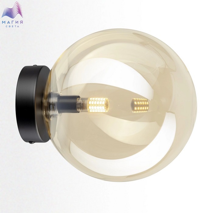 Потолочный светильник Citilux ORTON CL202512. Материал: металл/стекло. Цвет: черный/шампань. Плафон в форме шара. Прозрачный шар с золотистым оттенком шампань, закреплённый на чёрном матовом металлическом основании, становится стильным арт-объектом, который выглядит эффектно при любом освещении.
