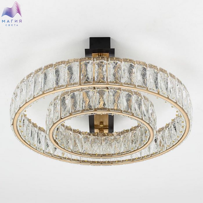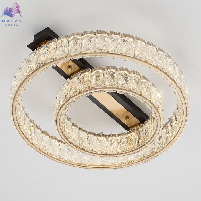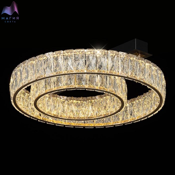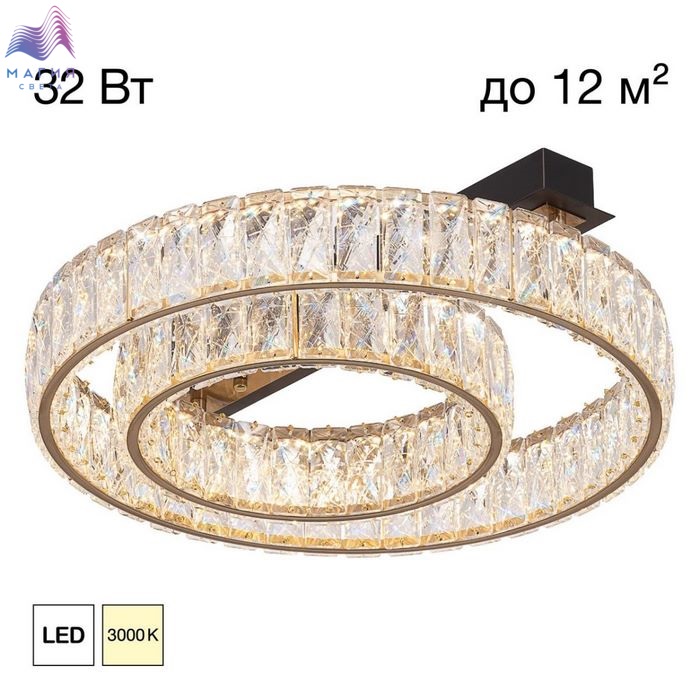 Хрустальная потолочная люстра Citilux PALANT CL325152. Материал: металл/хрусталь. Цвет: черный/бронза/прозрачный. На прямоугольном основании закреплены два кольца-модуля с хрустальным рассеивателем. Светодиодный свет с цветовой температурой 3000К мягко рассеивается в пространстве.
