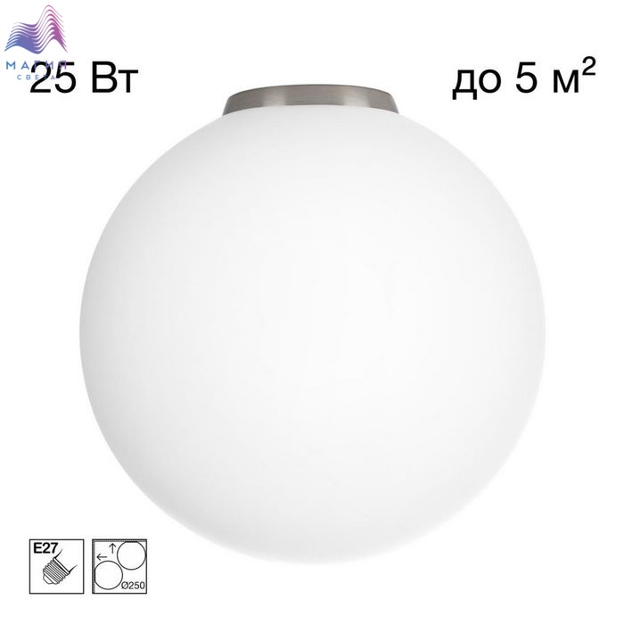 Потолочный светильник шар Citilux RON CL941D25B1. Материал: полимер. Цвет: матовый хром/белый. Плафон в форме шара.