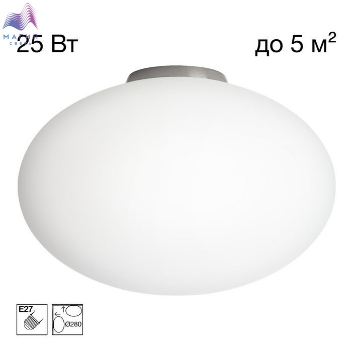 Потолочный светильник шар Citilux RON CL941E28B1. Материал: полимер. Цвет: матовый хром/белый. Плафон в форме эллипса.