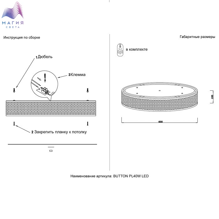Артикул: BUTTON PL40W LED