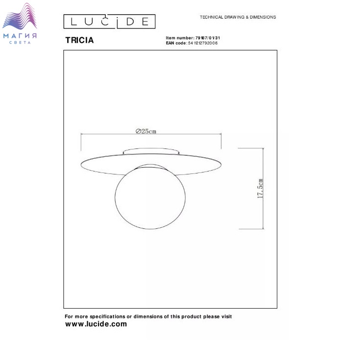 Потолочные светильники Lucide Tricia станут акцентном на потолке благодаря своей форме. К плоской металлической платформе, которая исполнена в трех цветах, прикреплен сферический плафон опалового цвета. Абажур создает мягкое свечение.