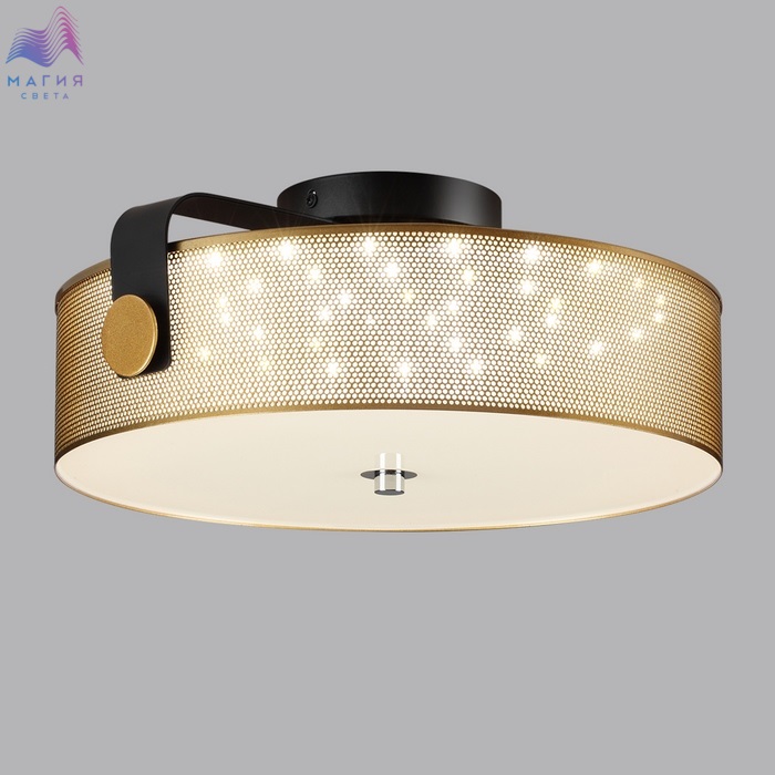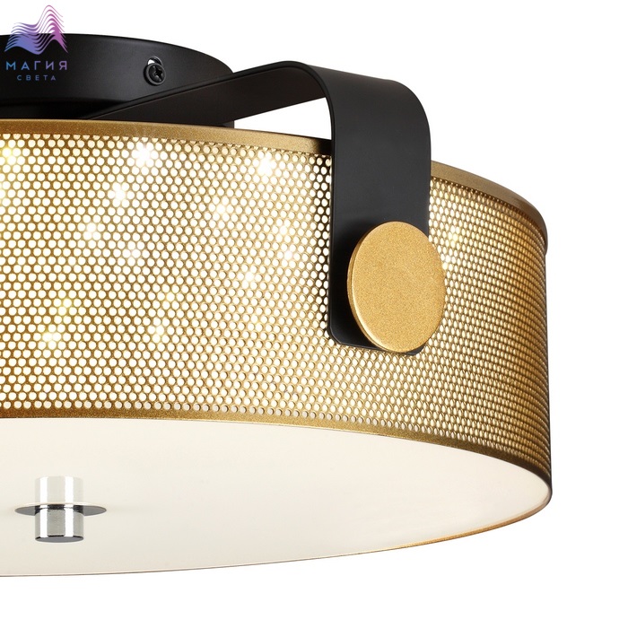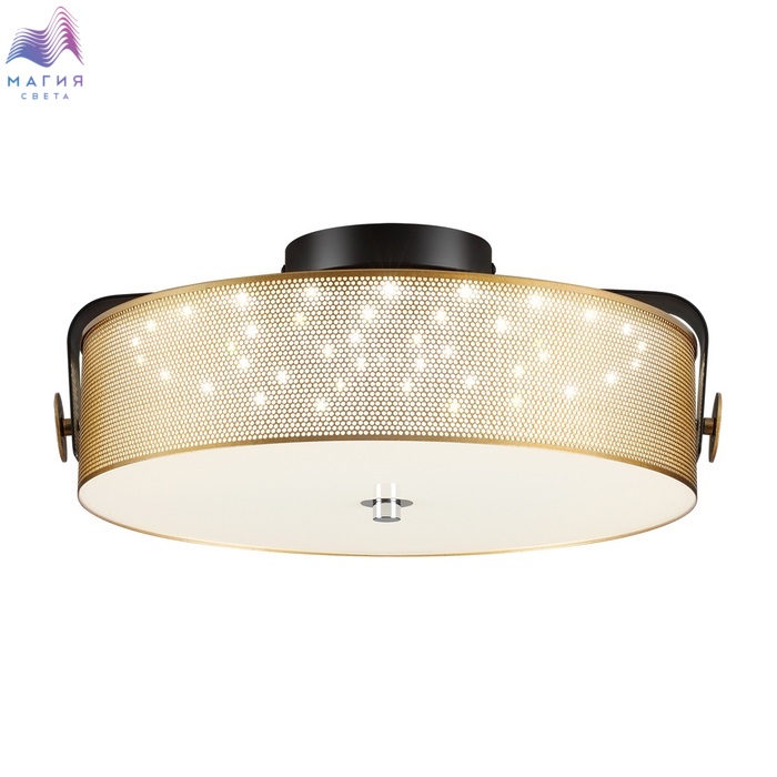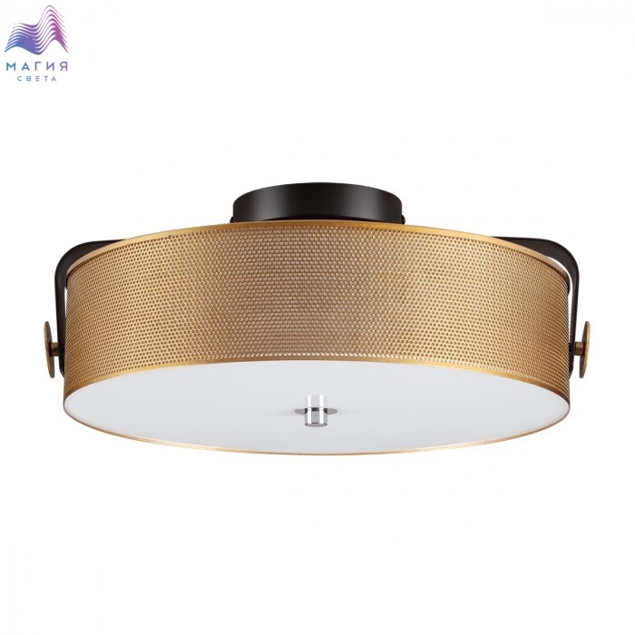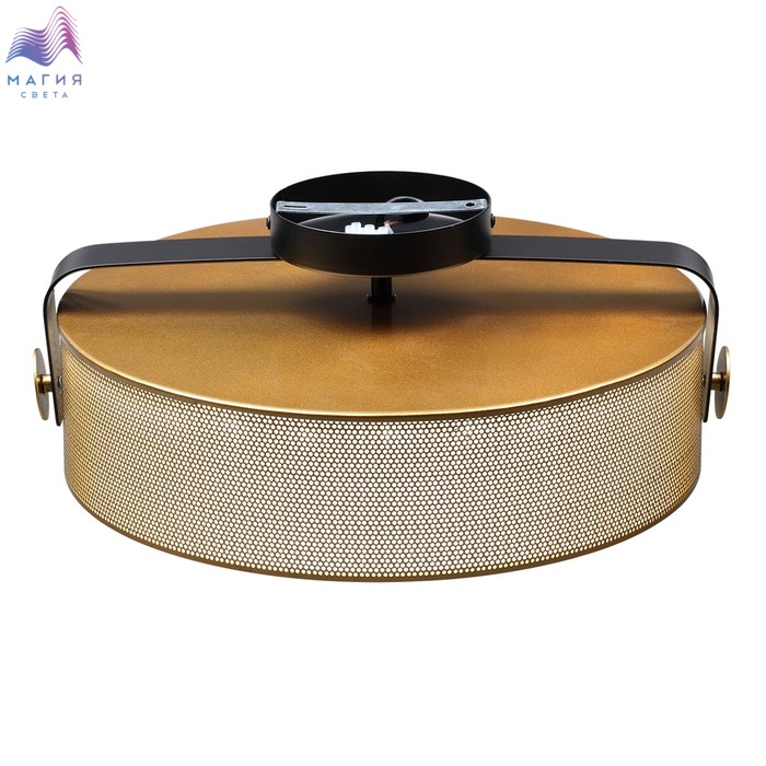 Lumion Drumy представлен в модном цвете античной латуни. Металлический перфорированный абажур дополнен стеклянным матовым рассеивателем.