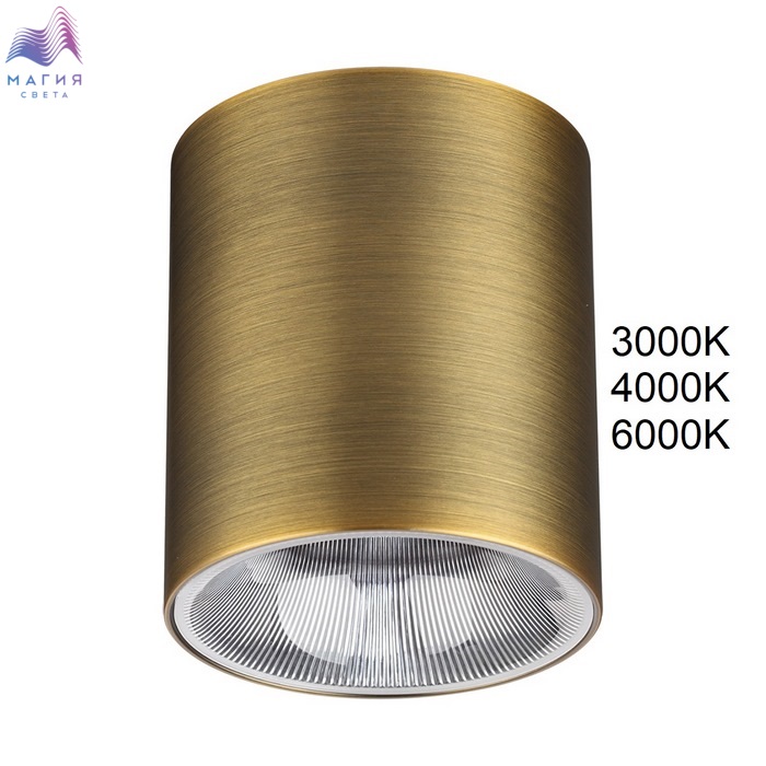 В светильниках Odeon light Brim используются светодиоды BRIDGELUX, а также переключатель цветовой температуры 3000/4000/6000, установленный внутри корпуса. Линия доступна в 3 цветах корпуса - брашированный бронзовый, черный и белый. CRI > 90.