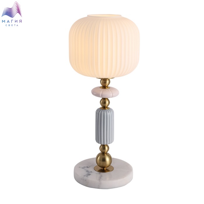 В серии Lumion Alegra соединились белая керамика в форме патисон и серая керамика бочкообразцой формы с ребристой фактурой. Плафоны изготовлены из белого стекла, вторящих по форме серым керамическим элементам. Арматура выкрашена в бронзовый цвет.
