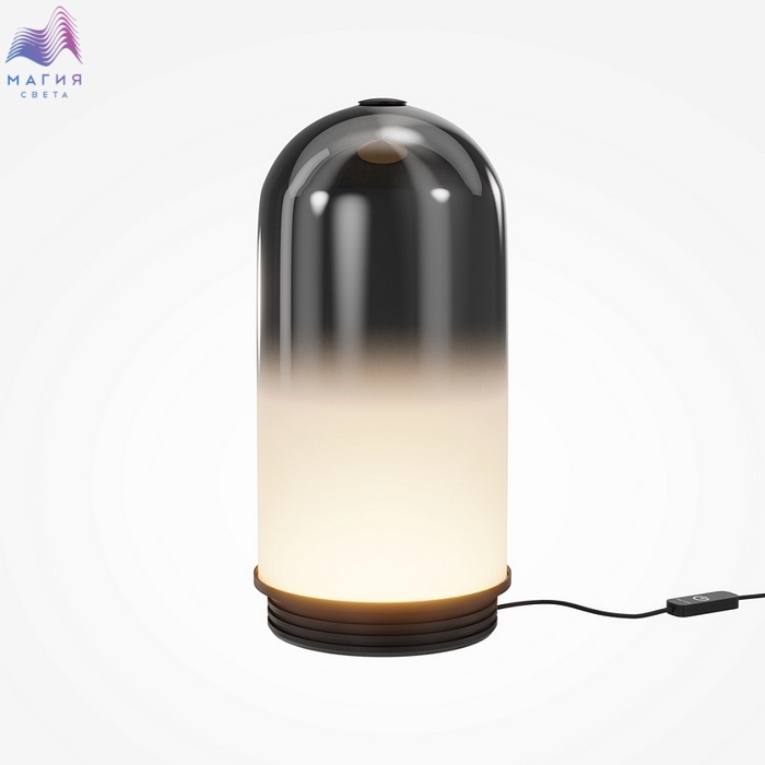 Серия Maytoni Fable. В коллекции представлены два цветовых решения: металлическое основание в цвете сатинированной латуни в сочетании с медово-янтарным стеклом или основание черного цвета в сочетании с дымчато-серым плафоном. Стекло окрашено зеркальным градиентом от цветного к полупрозрачному белому.