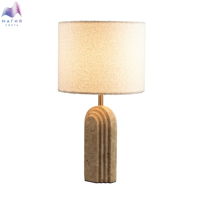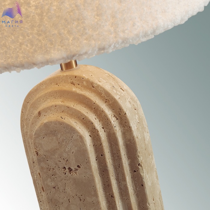Odeon light Loop ― настольный светильник с трендовым орнаментом на камне травертин и абажуром из нежной буклированной ткани. Используется с выключателем на проводе.