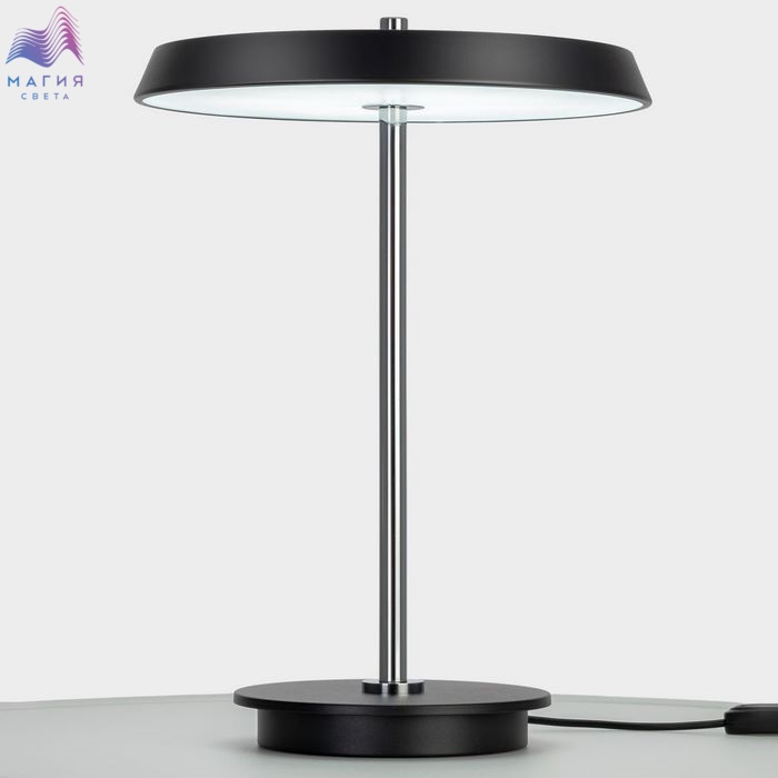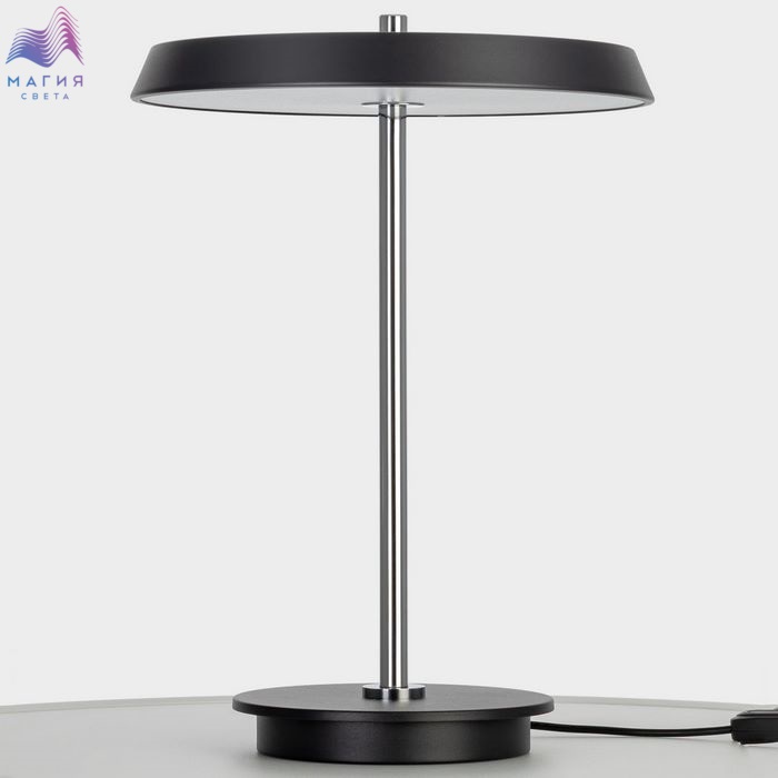 Светодиодная настольная лампа Citilux LINA CL812011. Материал: металл/полимер. Цвет: матовый черный/хром. Плафон - плоский светодиодный модуль, круглой формы с оригинальным усечённым торцом. Диммер с плавной регулировкой яркости от 10 до 100% позволяет выбрать оптимальный уровень освещения. Цветовая температура регулируется, доступны три варианта - 3000-4000-6000К.