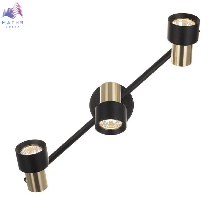 Споты Citilux SAT CL505631. Материал: металл. Цвет: черный/золото. Основание круглой формы с удобным выключателем, на штанге расположены три поворотных плафона.