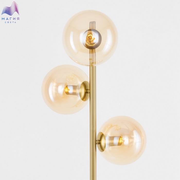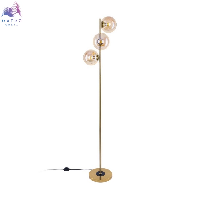 Торшер Citilux Лорен CL146933. Материал: металл/стекло. Цвет: бронза/шампань Плафоны в форме шара, изготовлены из прозрачного стекла светло-янтарного оттенка. Длина сетевого шнура 2м, выключатель напольный.