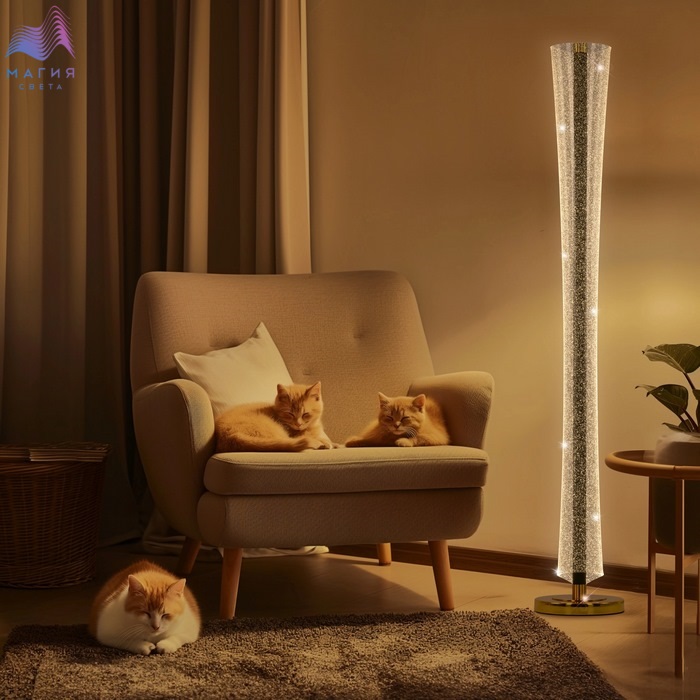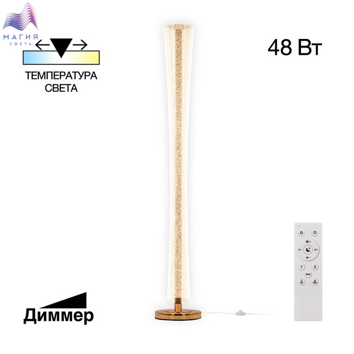 Торшер Citilux FANNY CL213921. Материал: металл/полимер. Цвет: графит/золото/прозрачный. Плафон-рассеиватель выполнен из прозрачного оптического полимера с глянцевой поверхностью и вкраплениями мельчайших блесток, которые отражают свет и переливается мириадами искр, создавая эффект звёздного неба в миниатюре. Пульт ДУ в комплекте(плавная регулировки яркости от 5 до 100%, управление цветовой температурой от 3000K до 6000K).