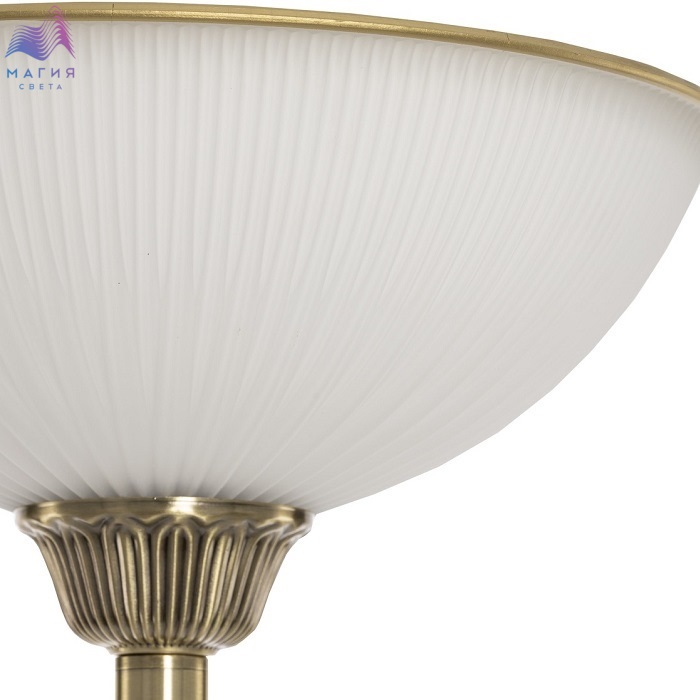 Торшер Citilux Адриана CL405913. Материал: металл/стекло. Цвет: бронза/белый. Плафон из матового стекла с рифлёной поверхностью и бронзовой окантовкой. Напольный выключатель находится на сетевом проводе (длина провода 2м).