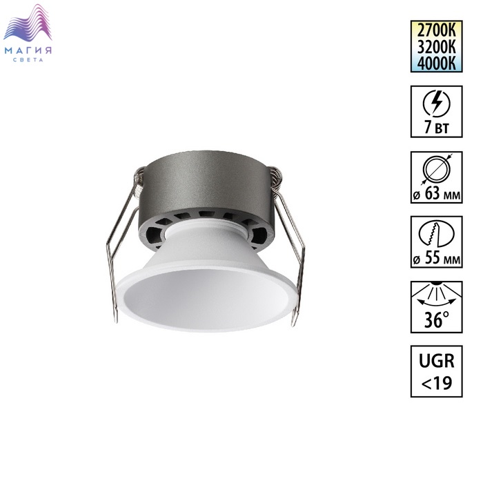 Встраиваемые светильники Novotech NOVA. Можно выбрать оттенок свечения (2700K/3200K/4000K). 3 цвета корпуса: матово-чёрный, матовый белый, брашированная бронза.
