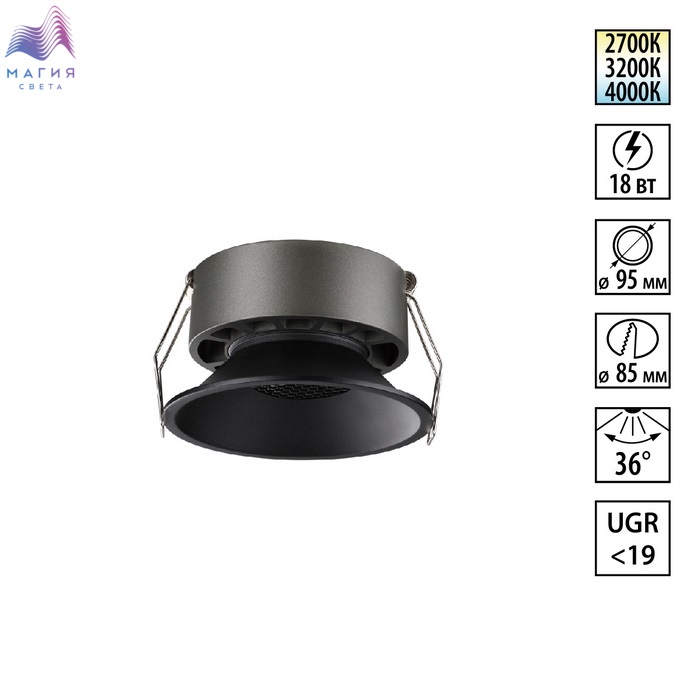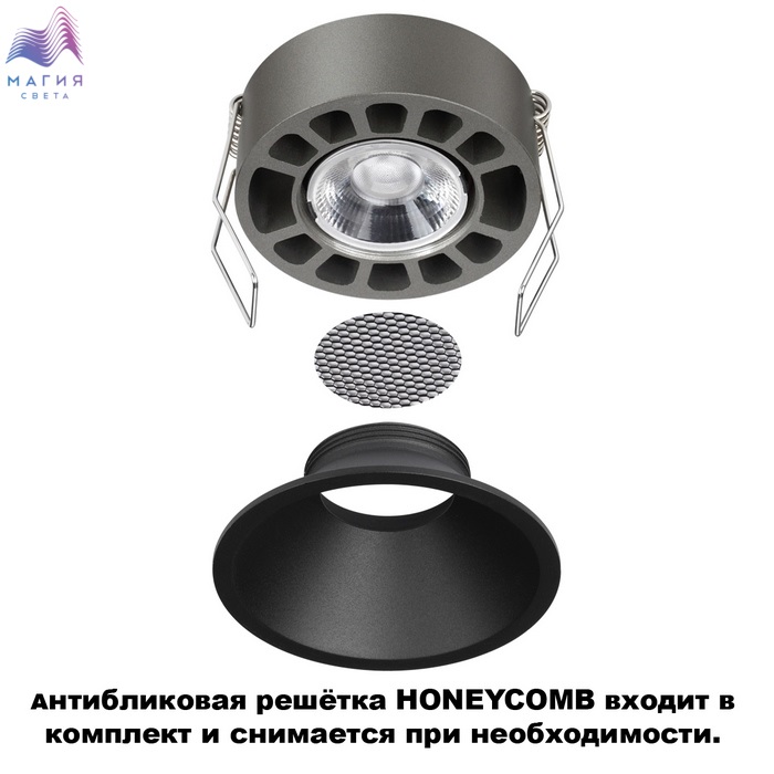 Встраиваемые светильники Novotech NOVA. Можно выбрать оттенок свечения (2700K/3200K/4000K). 3 цвета корпуса: матово-чёрный, матовый белый, брашированная бронза.