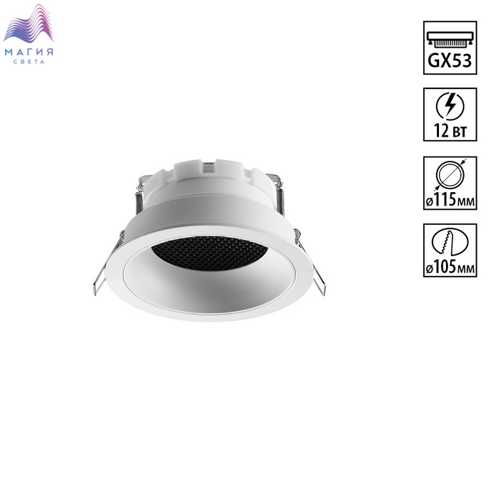 Встраиваемые светильники Novotech GEMINI. Модели представлены в черном и белом корпусах. Специальный съёмный светофильтр Honeycomb придаёт лучам света приятный рассеянный характер, устраняя раздражающие блики и улучшая восприятие окружающего пространства.