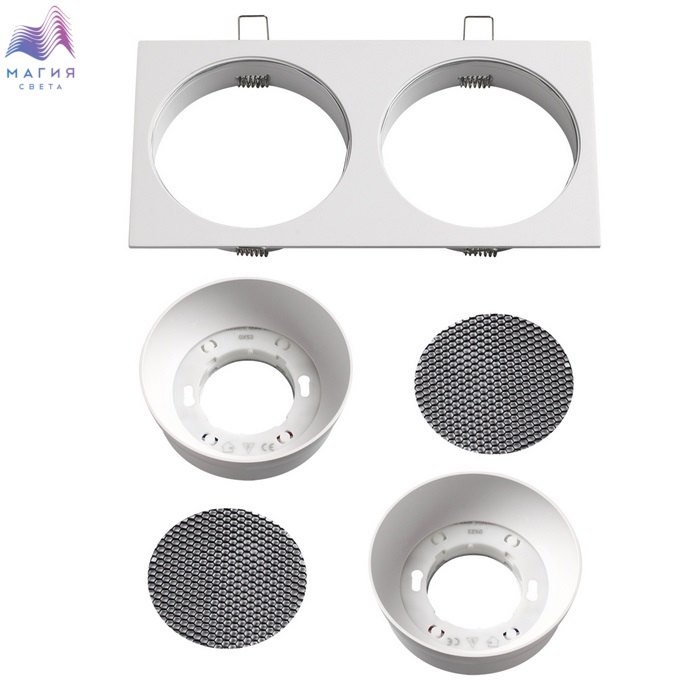 Встраиваемые светильники Novotech GEMINI. Модели представлены в черном и белом корпусах. Специальный съёмный светофильтр Honeycomb придаёт лучам света приятный рассеянный характер, устраняя раздражающие блики и улучшая восприятие окружающего пространства.