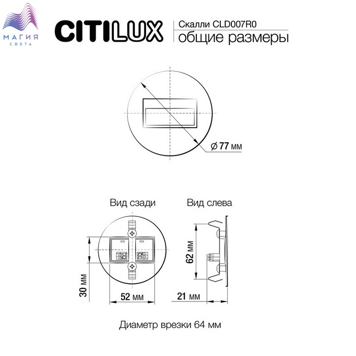 Светодиодный светильник для подсветки ступеней Citilux Скалли CLD007R0. Материал: металл/полимер. Цвет: белый. Форма - круг. Установка светильника не вызовет трудностей - он монтируется в подрозетник с внутренним диаметром 60-64 мм.
