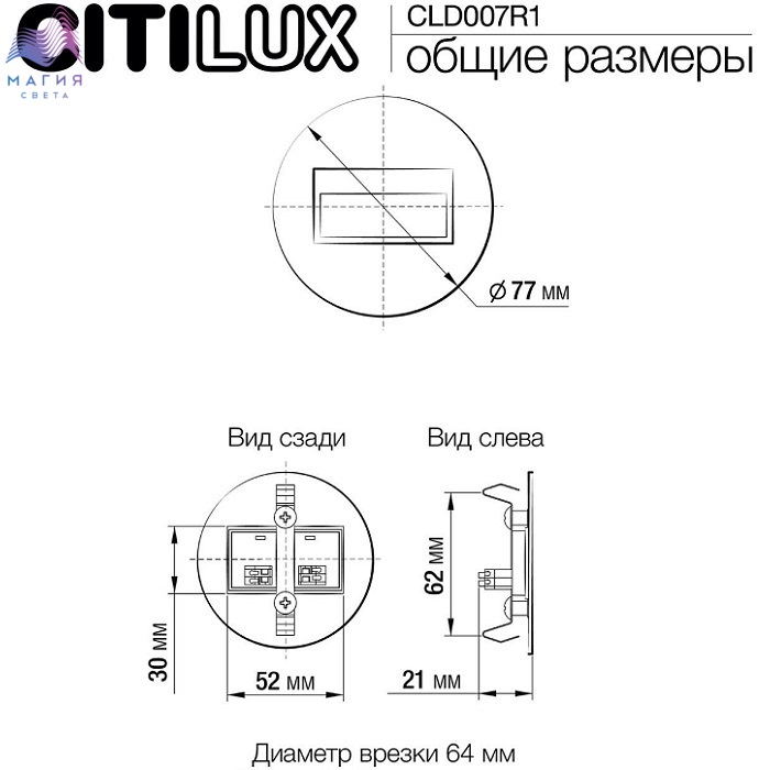 Светодиодный светильник для подсветки ступеней Citilux Скалли CLD007R1. Материал: металл/полимер. Цвет: матовый хром/белый. Форма - круг. Установка светильника не вызовет трудностей - он монтируется в подрозетник с внутренним диаметром 60-64 мм.