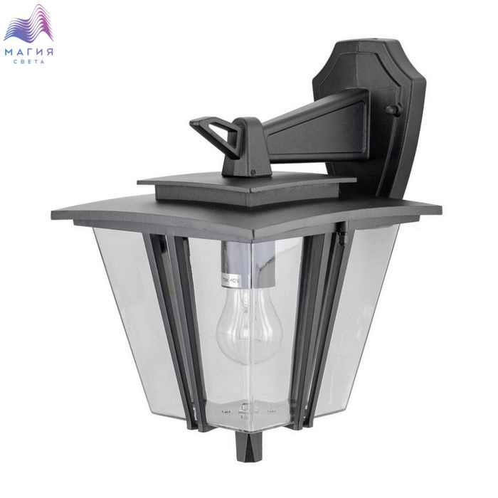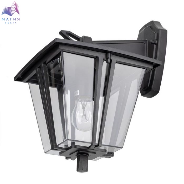 Уличный настенный светильник Citilux FORTS CLU10W. Материал: металл/акрил. Цвет: черный/прозрачный. Плафон в форме перевёрнутой усечённой пирамиды с оригинальным декором, дополнен прозрачным акриловым рассеивателем, обеспечивающим мягкий свет и защиту. Светильник имеет степень защиты — IP54.