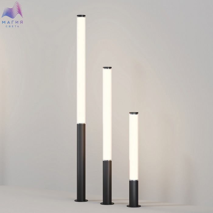 Садово-парковый светильник Maytoni Ster. Материал арматуры — акрил, алюминий. Цвет черный. Двойной плафон — внутри белый матовый акрил, снаружи декоративный прозрачный акрил с рельефными линиями. Три размера — три варианта мощности. LED источник света. Цветовая температура 3000К. Защита корпуса от пыли и влаги — IP65.