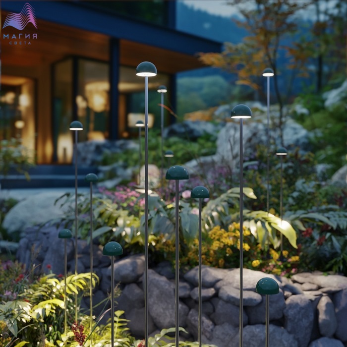 Odeon light Verde - это уличные светильники с IP65.Плафоны-шляпки темно-зеленого цвета притягивают внимание. В основании используется гальванизированная нержавеющая сталь. Светильники рекомендуется использовать в композиции из трех-пяти шт. с драйверами 357781/357782.