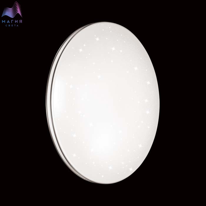 Светильник 2051/DLN серии Сонекс Lekaю Материал: металл, пластик. Форма: круг. Светильник декорирован ободом цвета хром и прозрачными точками, придающими включенному светильнику красивый эффект "звездного мерцания" и переливания. IP43. На корпусе расположен переключатель температуры цвета на драйвере, с помощью которого осуществляется изменение цветовой температуры.